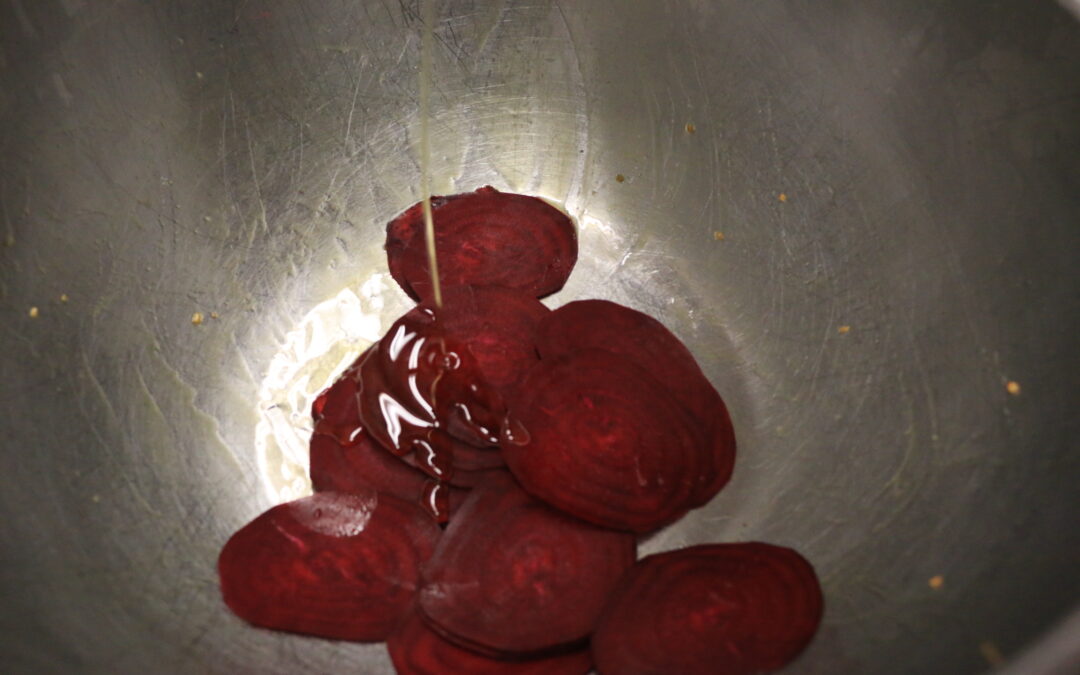slcied beets drizzled with olive oil