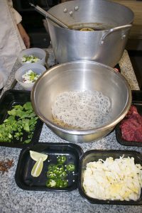 According to Wikipedia, “Phở or pho is a Vietnamese noodle soup consisting of broth, rice noodles called bánh phở, a few herbs, and meat, primarily made with either beef or chicken.” We challenged our executive chef to develop Paleo version. She used shredded cabbage in place of the bean sprouts and our rich Grass-fed Beef Bone Broth as the base. Sweet Potato Starch Noodles took the place place of the traditional rice noodle.