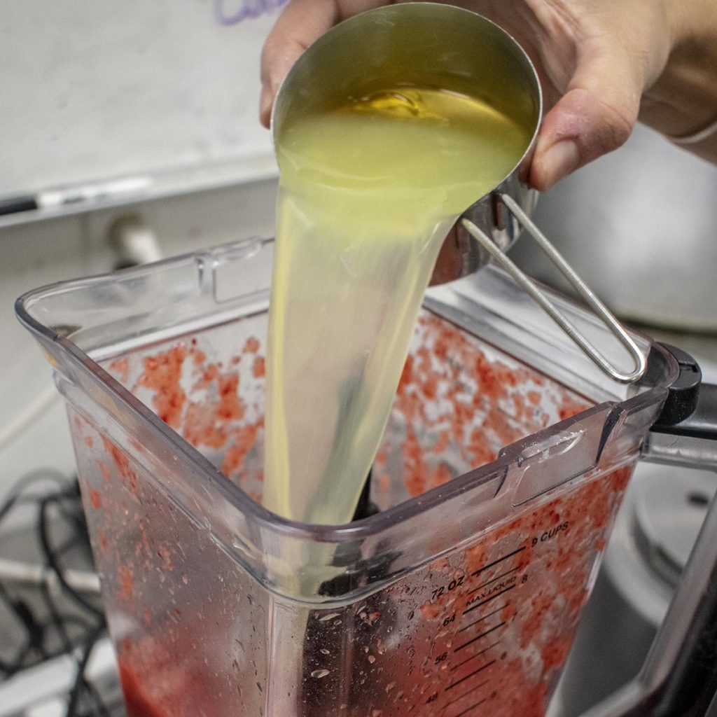 1 lb fresh strawberries, leaves removed, and pureed in a food processor